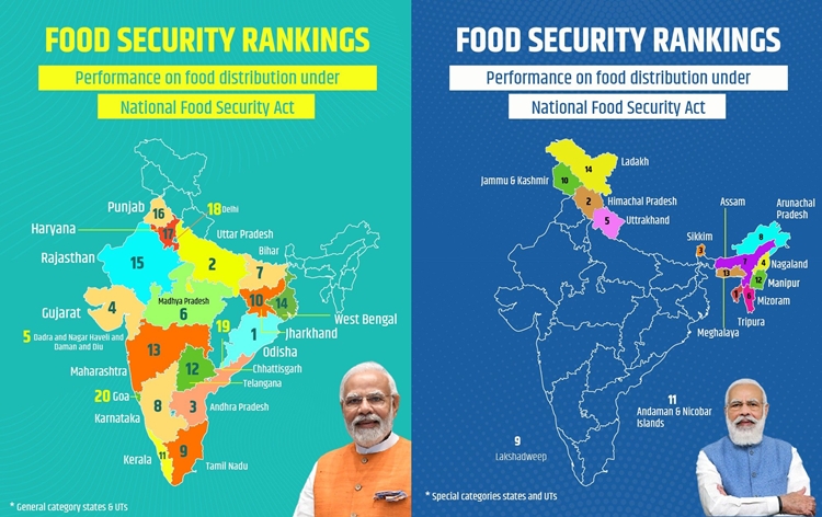 प्रदेश राष्ट्रीय खाद्य सुरक्षा अधिनियम के लिए प्रथम राज्य रैंकिंग सूचकांक में ओडिसा, उत्तर प्रदेश और आंध्र शीर्ष तीन स्थानों पर है