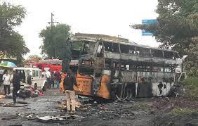 ट्रक से टकराने के बाद बस में आग लगी, 12 लोगों की मौत, 43 घायल