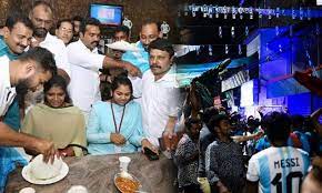 त्रिशूर . केरल में एक होटल के मालिक ने फुटबॉल विश्व कप के फाइनल मुकाबले से पहले अर्जेंटीना के जीतने पर 1,500 प्लेट बिरयानी मुफ्त बांटने का वादा किया था, जो उन्होंने पूरा भी किया। केरल के त्रिशूर जिले के पल्लीमूला इलाके में रॉकलैंड होटल के मालिक शिबू अर्जेंटीना के कट्टर प्रशंसक हैं। उन्होंने अर्जेंटीना की जीत पर 1,000 प्लेट बिरयानी वितरित करने का वादा किया था। हालांकि, फ्रांस पर अर्जेंटीना की जीत के एक दिन बाद सोमवार को उम्मीद से अधिक लोग उनके होटल के बाहर कतार लगाकर खड़े हो गए। शिबू अपनी बात से पीछे नहीं हटे और उन्होंने न केवल अपना वादा पूरा किया मुफ्त बिरयानी की प्लेटों की संख्या 500 और बढ़ा दी। शिबू ने पत्रकारों से बात करते हुए कहा, “मुझे उम्मीद नहीं थी कि सुबह इतनी जल्द इतनी भारी भीड़ जमा हो जाएगी।” यह पूछे जाने पर कि क्या वह उन्हें खिला पाएंगे तो शिबू ने कहा, “मैंने मुफ्त बिरयानी की प्लेटों की संख्या 500 और बढ़ा दी है।” वहां मौजूद कांग्रेस के विधायक शफी परम्बिल ने संवाददाताओं से कहा कि अर्जेंटीना के प्रशंसक पिछले 36 साल से इस जीत का इंतजार कर रहे थे। उन्होंने कहा, “36 साल का लंबा इंतजार खत्म हुआ। मेस्सी की जितनी उम्र है, उससे ज्यादा साल से हम इसका इंतजार कर रहे थे। अर्जेंटीना जब हारी, तब भी हम उसके समर्थक थे और अब जीतने पर भी हम उसके प्रशंसक हैं। शिबू ने भी ऐसी ही बात कही। उन्होंने कहा कि वह मुफ्त में स्वादिष्ट व्यंजन देकर तीन दशक से अधिक लंबे इंतजार के अंत का जश्न मना रहे हैं। उन्होंने कहा, “मैं मुफ्त में बिरयानी बांटकर खुशियां साझा कर रहा हूं।