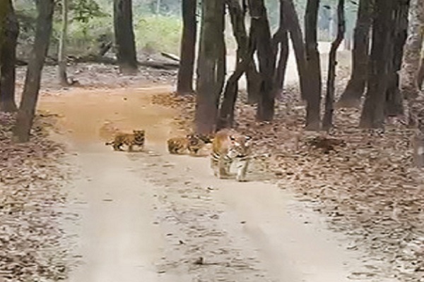 सिंह ने बताया कि पांचवी बार में बाघिन ने चार शावकों को जन्म दिया है। बाघिन अब तक पांच बार में 20 शावकों को जन्म दे चुकी है। उन्होंने कहा कि टी-4 बाघिन की उम्र वर्तमान में 12 साल है, जो पूरी तरह स्वस्थ है। उन्होंने बताया कि सोमवार सुबह सफारी कर रहे पर्यटकों के सामने से जैसे ही जंगल की कच्ची सड़क पार करती पाटदेव बाघिन निकली, उसके पीछे-पीछे करीब दो माह उम्र के नन्हे चार शावक चहलकदमी करते सड़क पर आ गए।