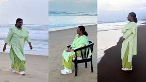 राष्ट्रपति मुर्मू ने पुरी के समुद्र तट पर कुछ समय बिताया