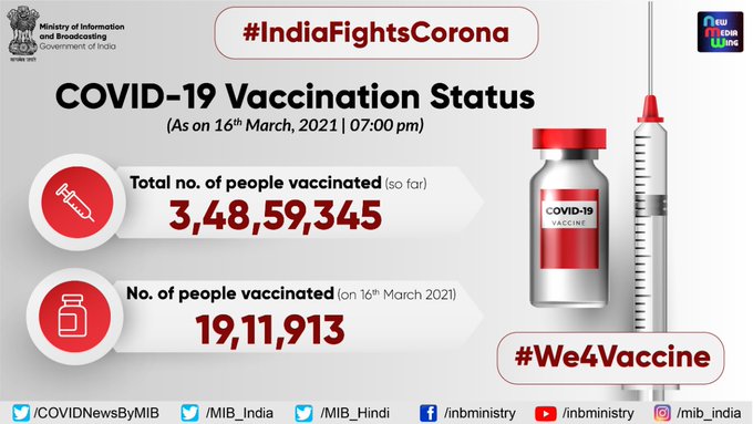 देश में अब तक साढ़े तीन करोड़ से अधिक लोगों को कोरोना का टीका लगा