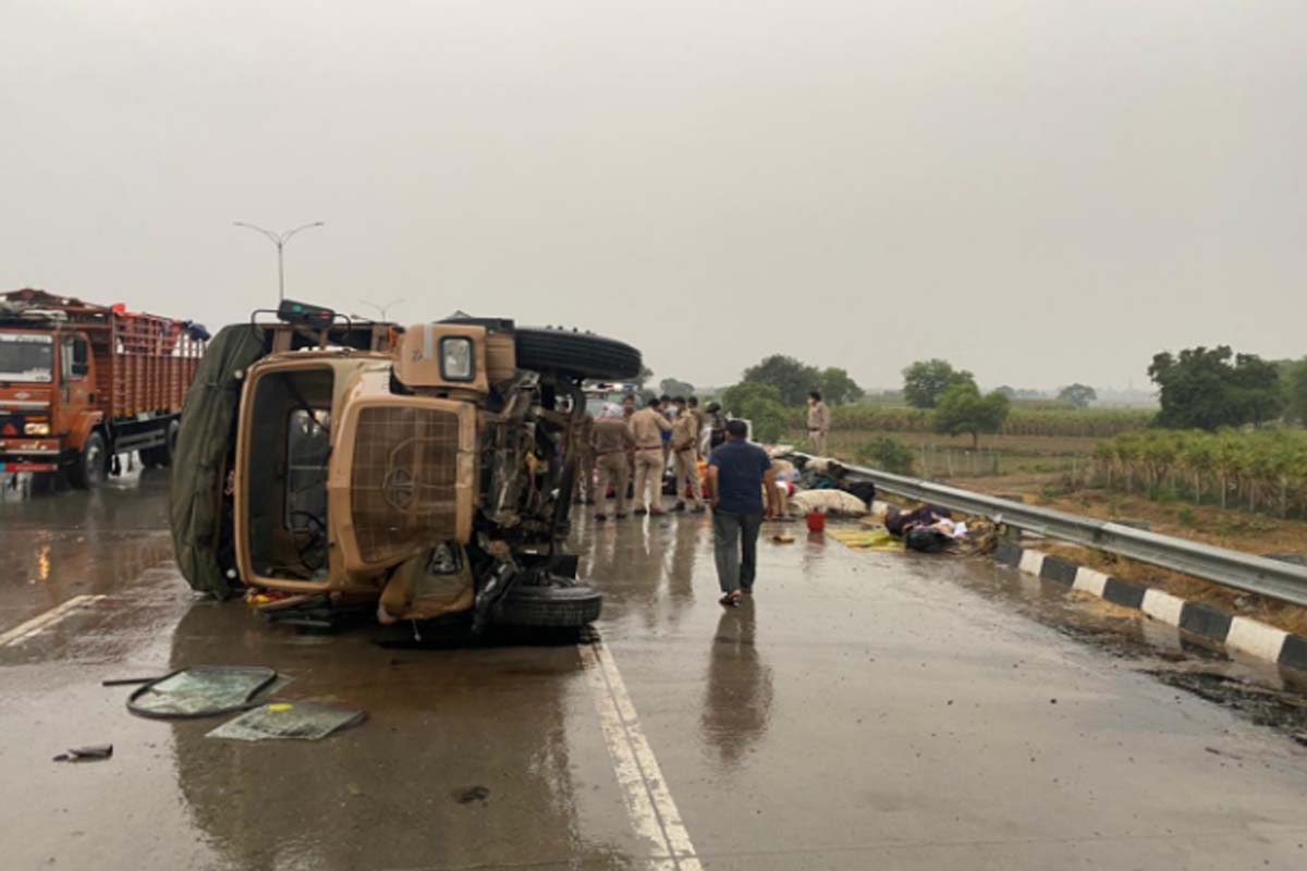 ट्रक पलटने से पीएसी के 15 जवान घायल