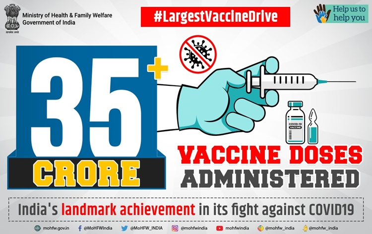 देश में अब तक 35 करोड़ से अधिक कोविड रोधी टीके लगाये गये, स्वस्थ होने की दर बढ़कर 97 प्रतिशत से अधिक