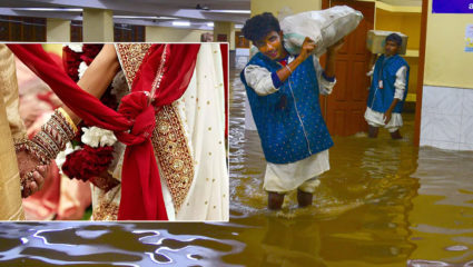 भवन में चल रही थी शादी की रस्में.. बाढ़ का पानी घुसा... 60 लोग फंसे