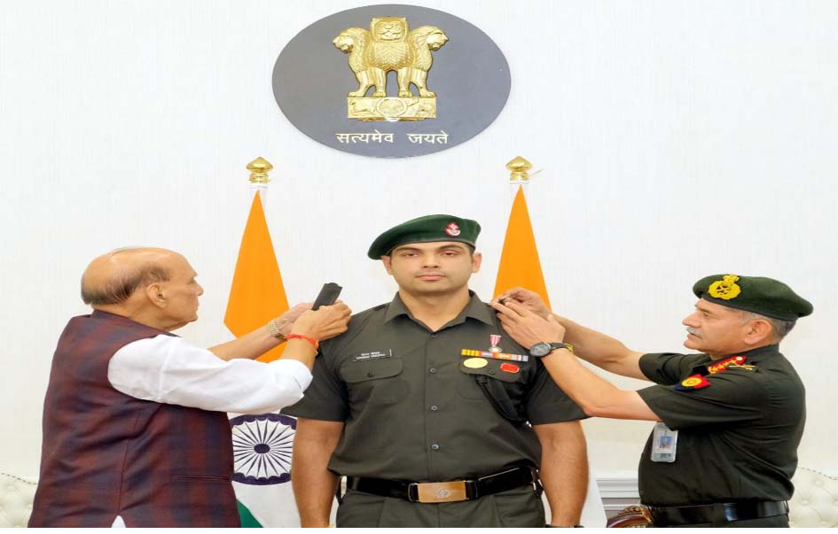 नई दिल्ली। भारत के स्टार जैवलिन थ्रोअर और दो बार के ओलंपिक पदक विजेता नीरज चोपड़ा को बुधवार को भारतीय सेना की टेरिटोरियल आर्मी में मानद लेफ्टिनेंट कर्नल के पद से सम्मानित किया गया। रक्षा मंत्री राजनाथ सिंह ने साउथ ब्लॉक, नई दिल्ली में आयोजित एक भव्य समारोह में नीरज को यह सम्मान चिन्ह औपचारिक रूप से प्रदान किया।